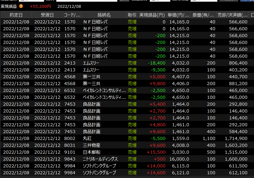 12/9(金)反発<デイトレ結果> 2022.12.09
