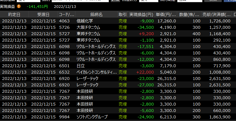 12/14(水)思ったのと違う<デイトレ結果> 2022.12.14
