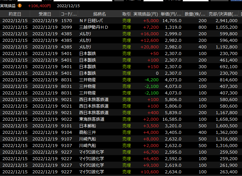 12/14(水)思ったのと違う<デイトレ結果> 2022.12.14