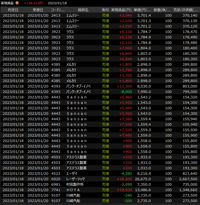1/17(火)錯綜<デイトレ結果> 2023.01.17