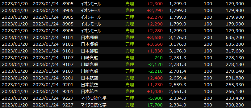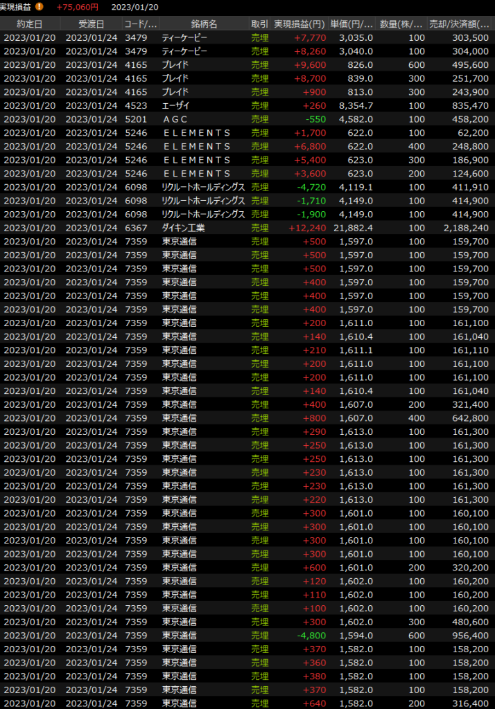 1/23(月)続伸!<デイトレ結果> 2023.01.23