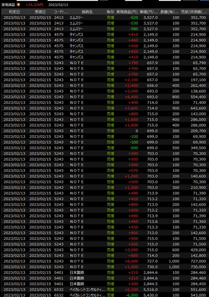 2/10(金)欲に眩む<デイトレ結果> 2023.02.10