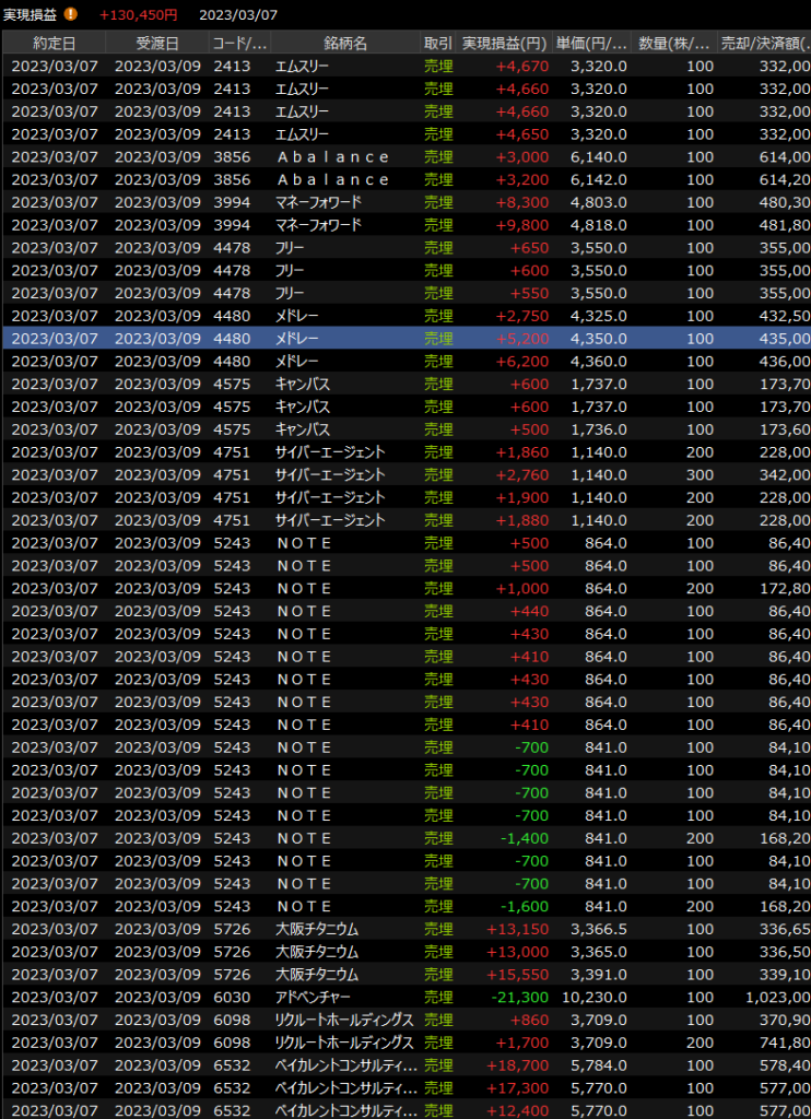 3/8(水)踏み上げ局面<デイトレ結果> 2023.03.08