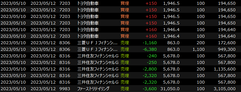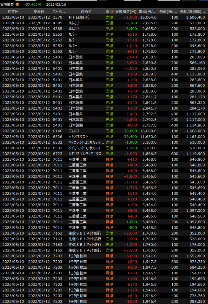 5/9(火)鉄鋼の強さ<デイトレ結果> 2023.05.09