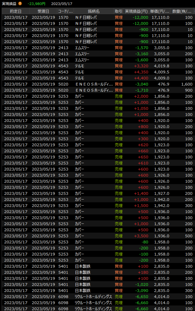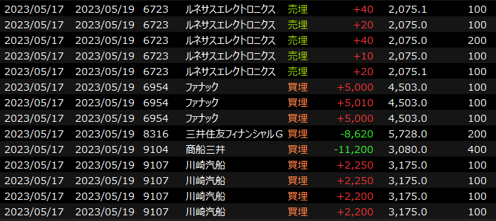 5/16(火)東京独り勝ち<デイトレ結果> 2023.05.16