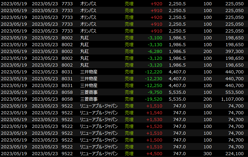 5/22(月)踏みあげられて大敗<デイトレ結果> 2023.05.22