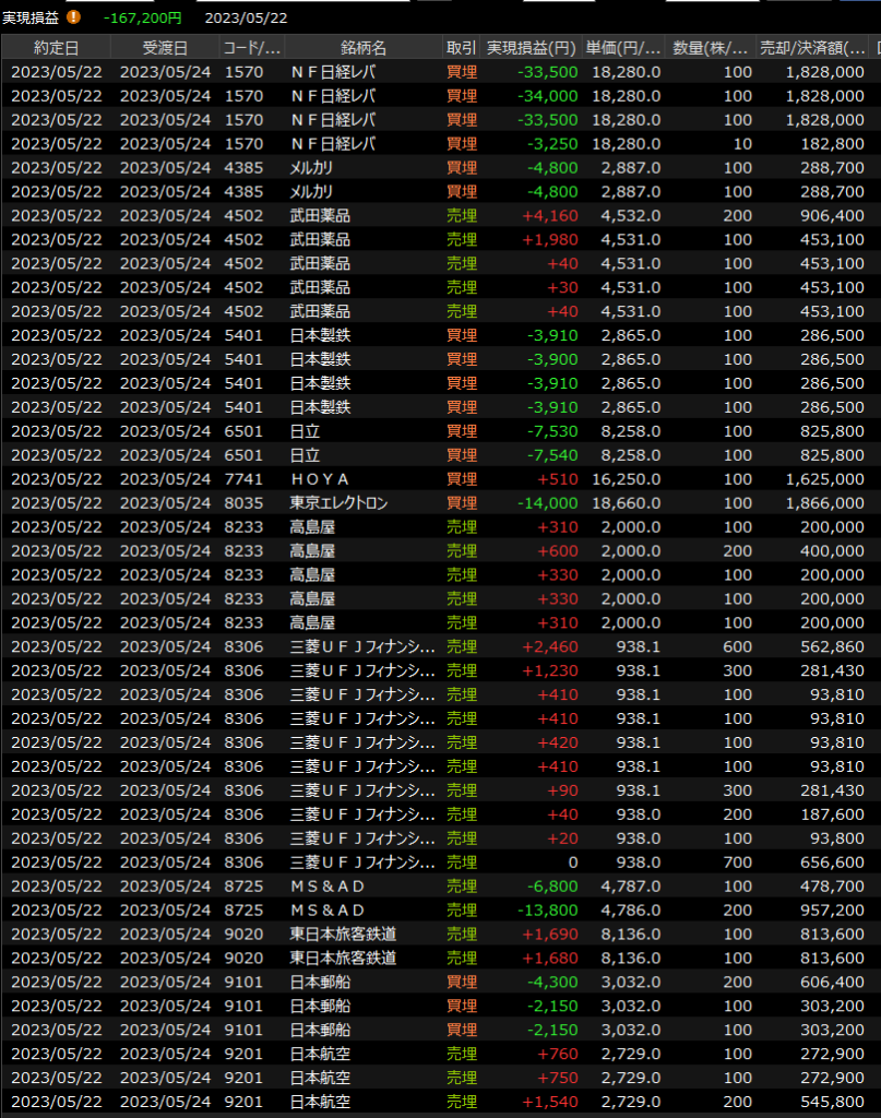 5/23(火)久々の調整<デイトレ結果> 2023.05.23