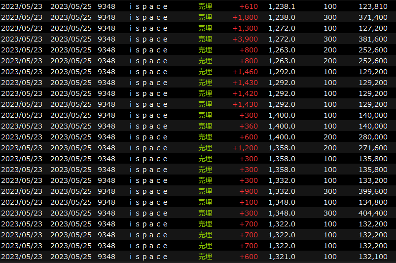 デイトレは昨日ショートで担がれたのであきらめてリクルート、エムスリーなどグロースや商社周りをロングしていましたが、前場後半に利益伸びなくなったのでポジション完済(+11万)。先物の伸びが良くないので後場は日経レバなど少しショートで持って崩れたところをすぐに買い戻し。その後ispace、Aバラなどをちょっといじって終了(+4万)
