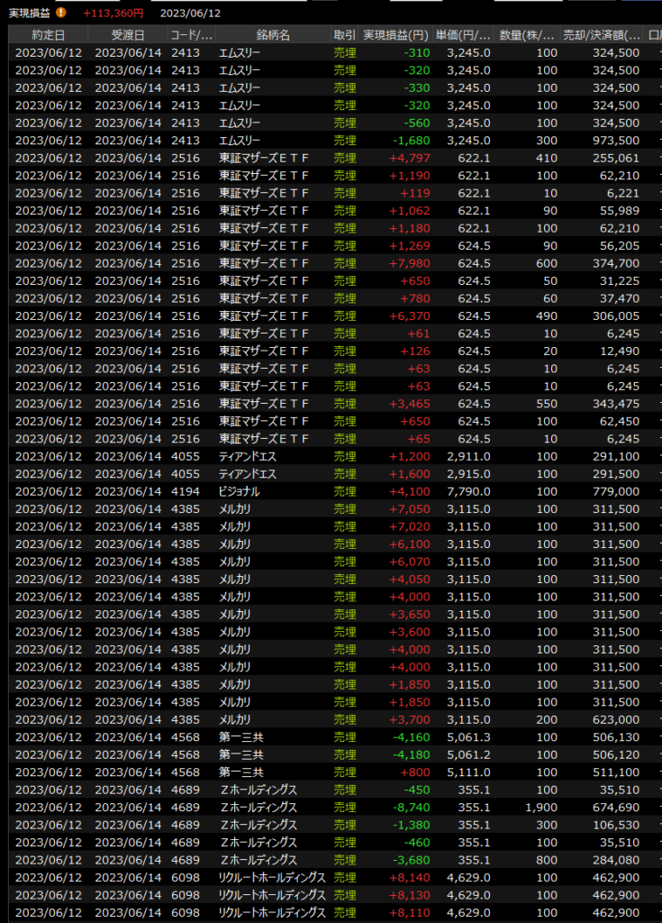 6/13(火)強すぎる<デイトレ結果> 2023.06.13