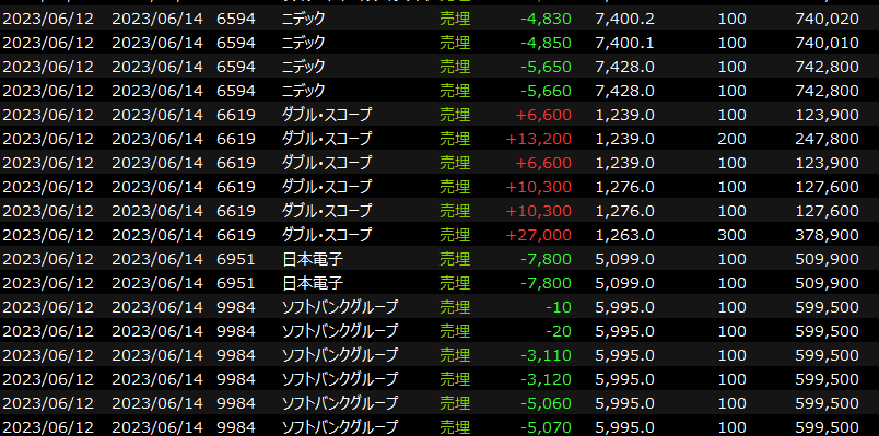 6/9(金)強い!<デイトレ結果> 2023.06.09
