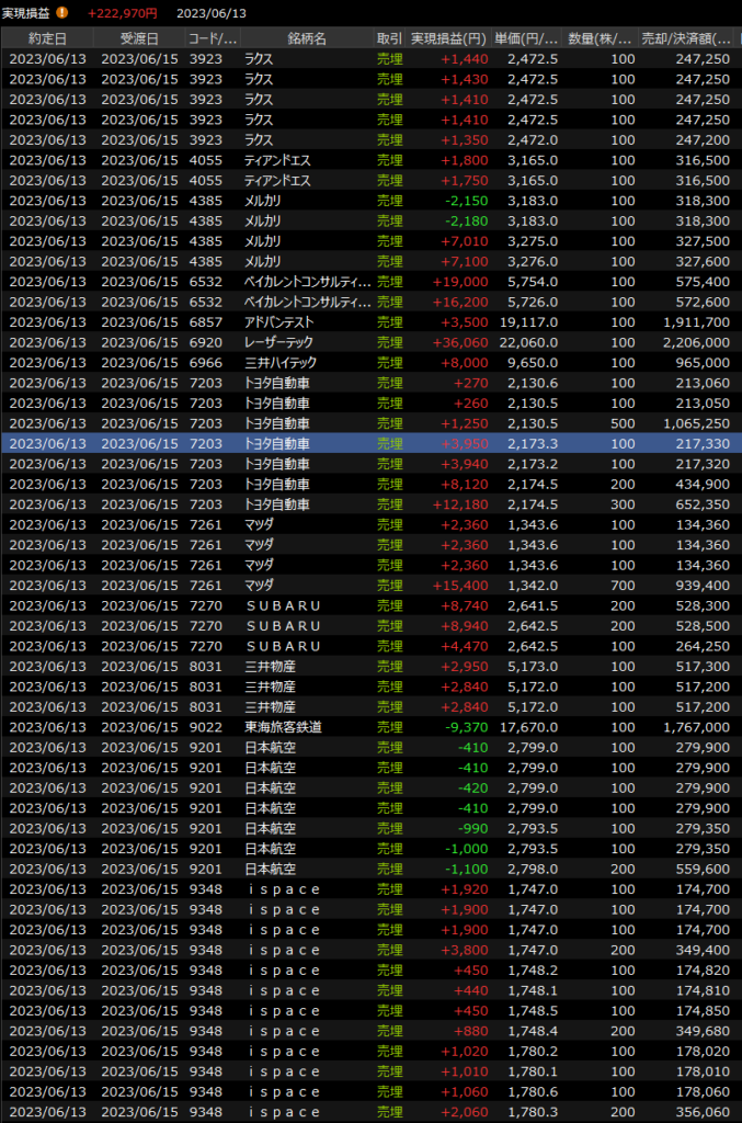 6/14(水)さすがに<デイトレ結果> 2023.06.14