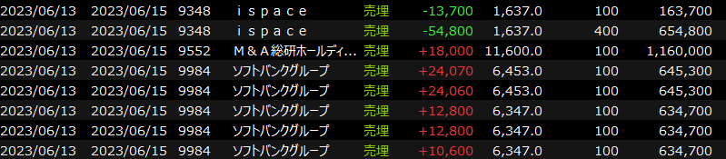 6/12(月)耐えた<デイトレ結果> 2023.06.12
