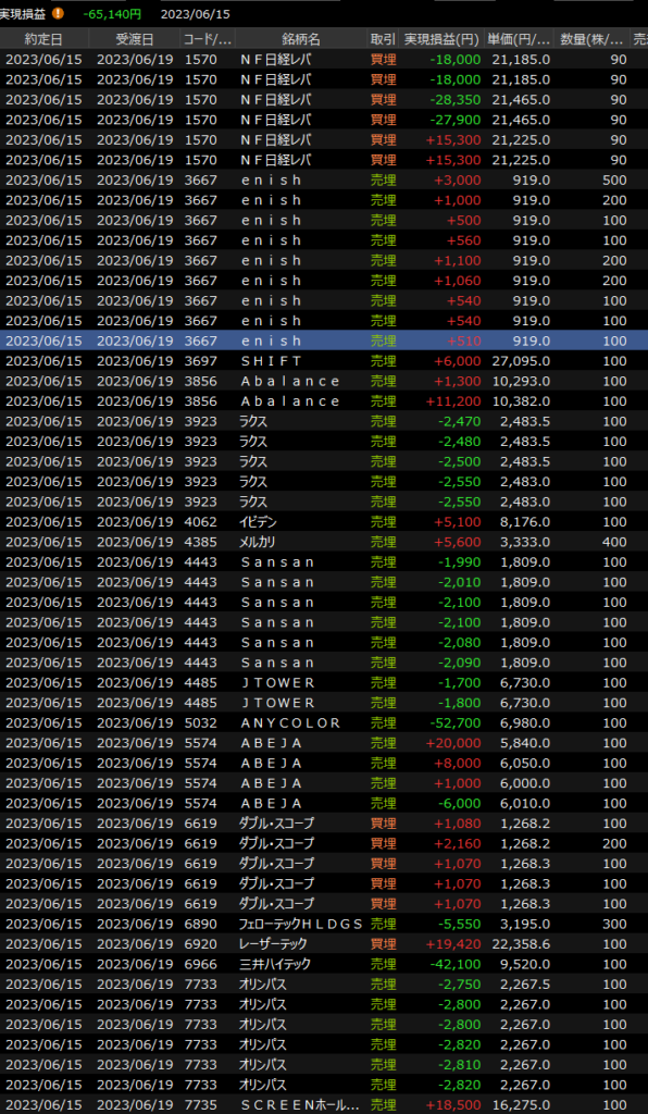 6/16(金)マザーズ爆発<デイトレ結果> 2023.06.16