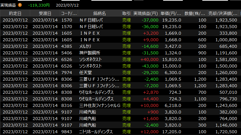 7/13(木)やっとリベンジ<デイトレ結果> 2023.07.13
