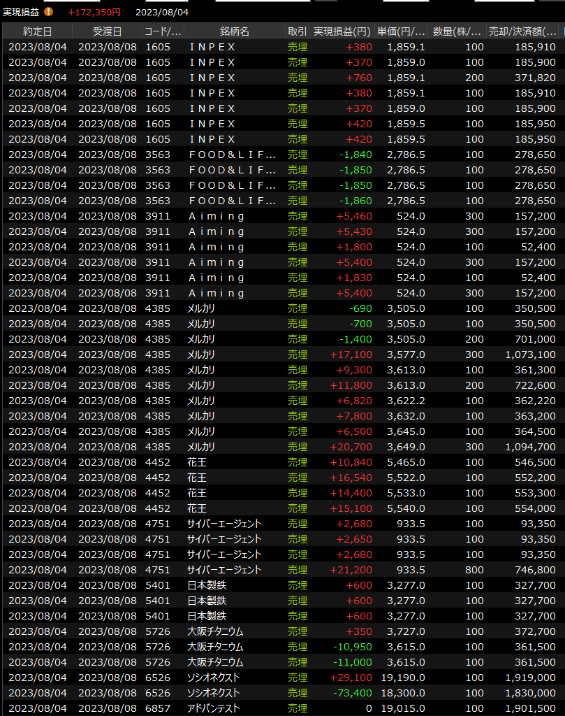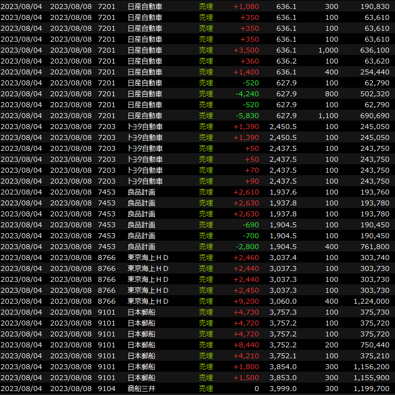 8/3(木)二日連続過剰反応<デイトレ結果> 2023.08.03