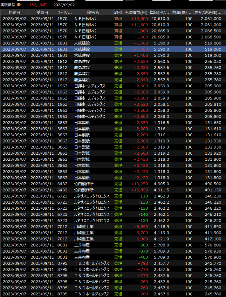 9/6(水)この地合いで連敗中<デイトレ結果> 2023.09.06