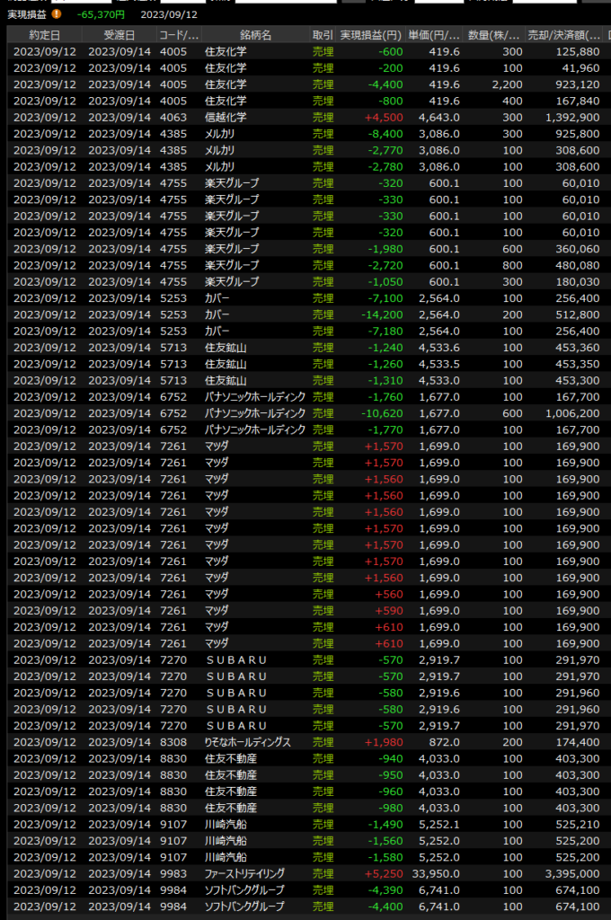 9/13(水)強いんだか弱いんだか<デイトレ結果> 2023.09.13