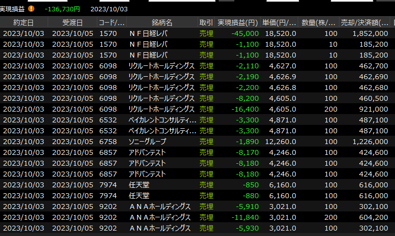 10/2(月)ひどすぎる<デイトレ結果> 2023.10.02