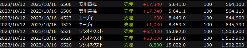 10/11(水)今日も堅調<デイトレ結果> 2023.10.11