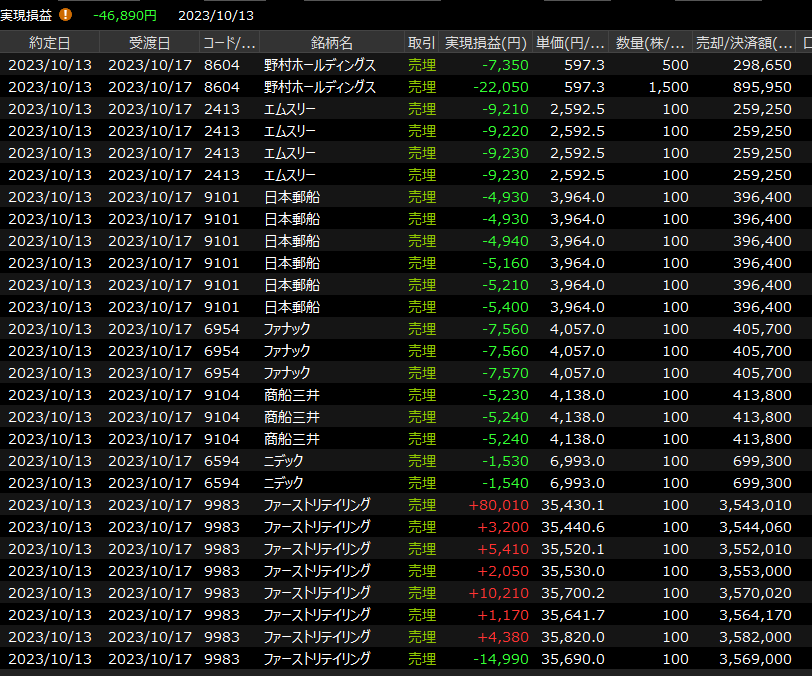 10/13(金)ファストリ以外全滅相場<デイトレ結果>