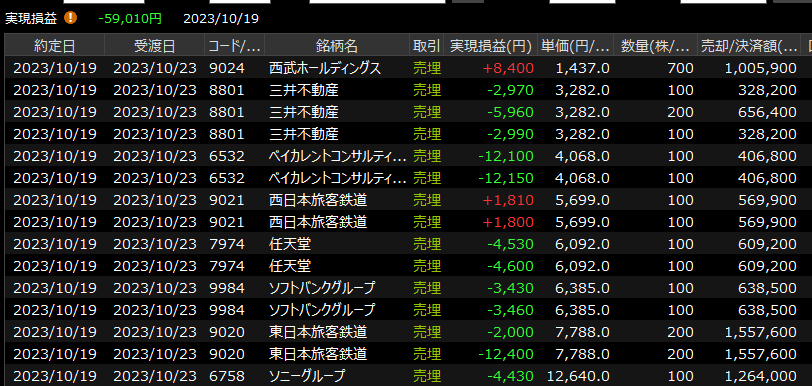 10/18(水)連敗継続<デイトレ結果> 2023.10.18