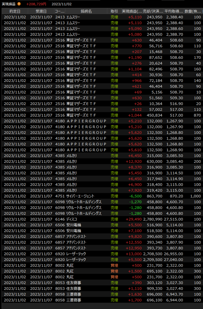11/1(水)強い<デイトレ結果> 2023.11.01