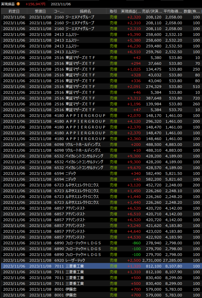 11/2(木)力強い続伸<デイトレ結果> 2023.11.02