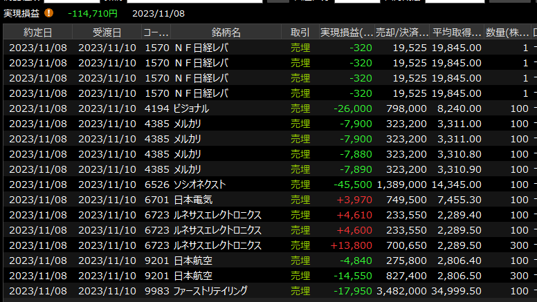 デイトレはルネサスが底堅かったですが、ソシオとメルカリでやられました。下げの時に必ず巻き込まれてる自分に辟易しますが、明日もがんばります。