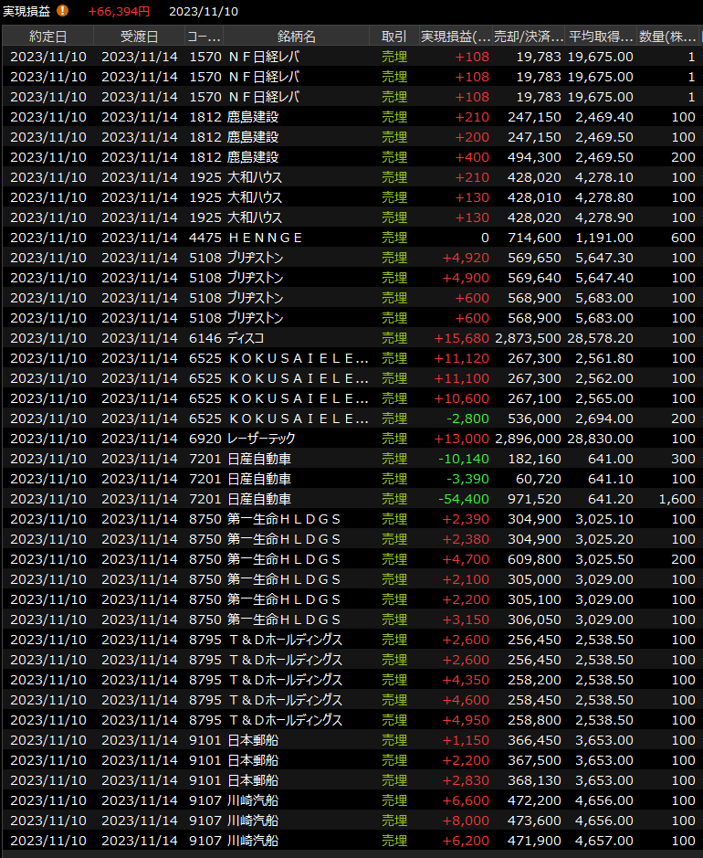 11/9(木)なぜソシオにいった<デイトレ結果> 2023.11.09