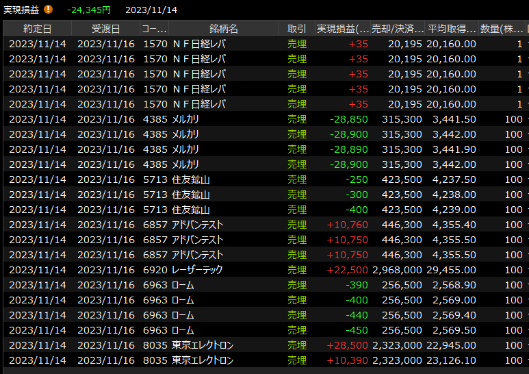 11/13(月)週初から惨敗<デイトレ結果> 2023.11.13