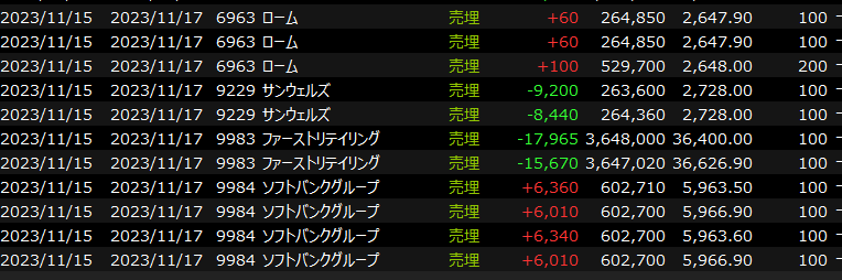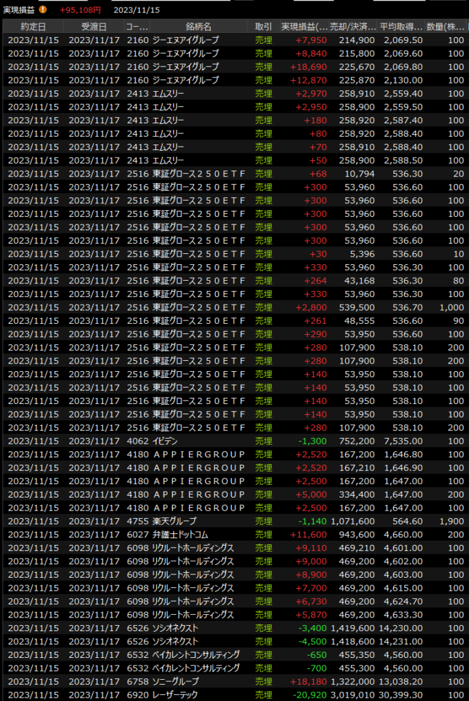 11/16(木)レーザー無双<デイトレ結果> 2023.11.16