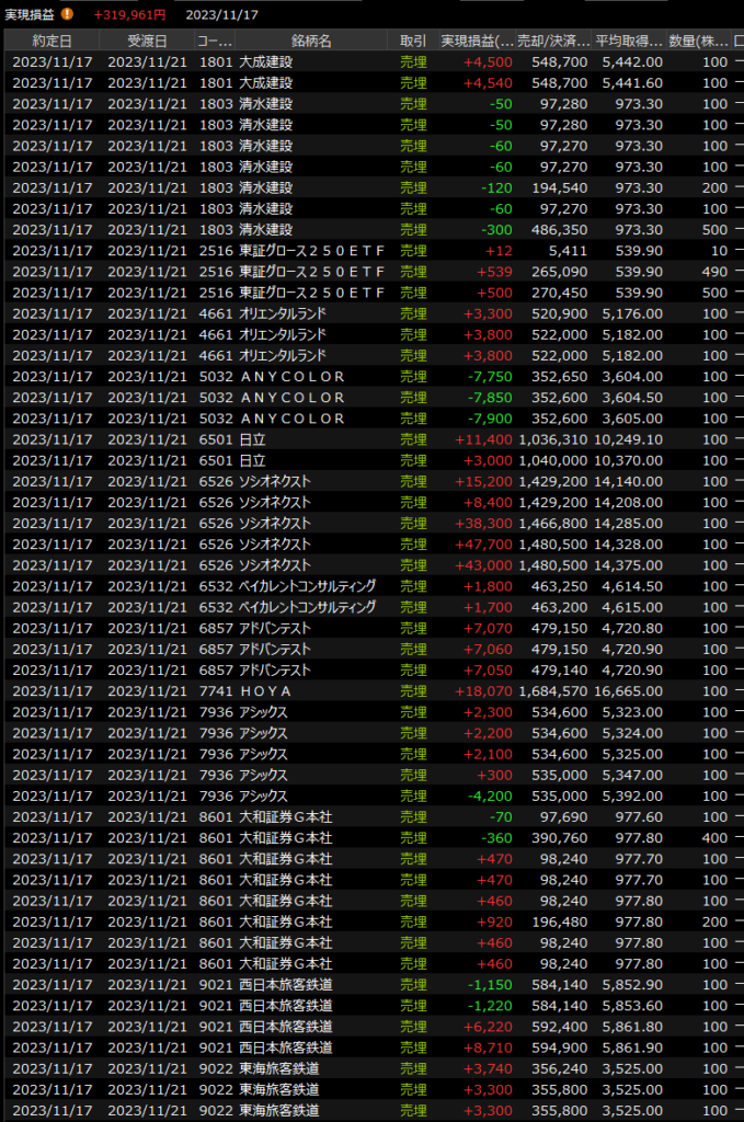11/20(月)新興グロース<デイトレ結果> 2023.11.20