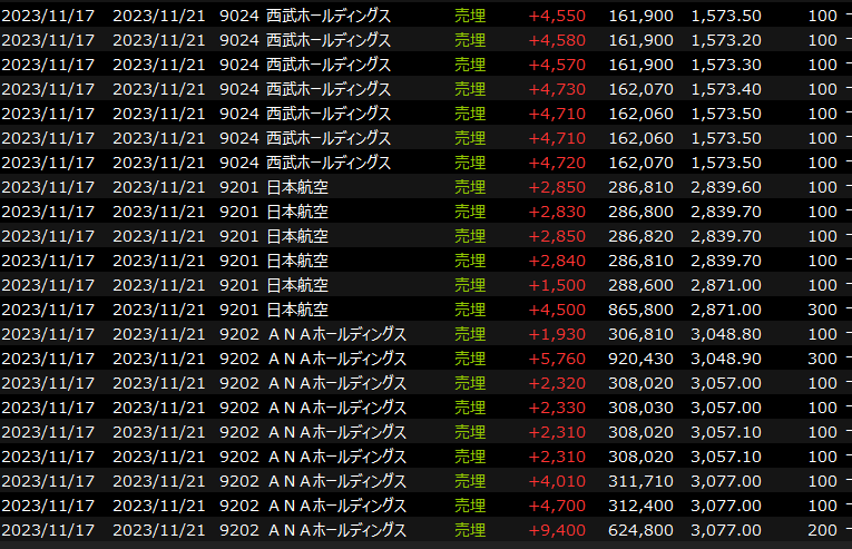 11/16(木)レーザー無双<デイトレ結果> 2023.11.16