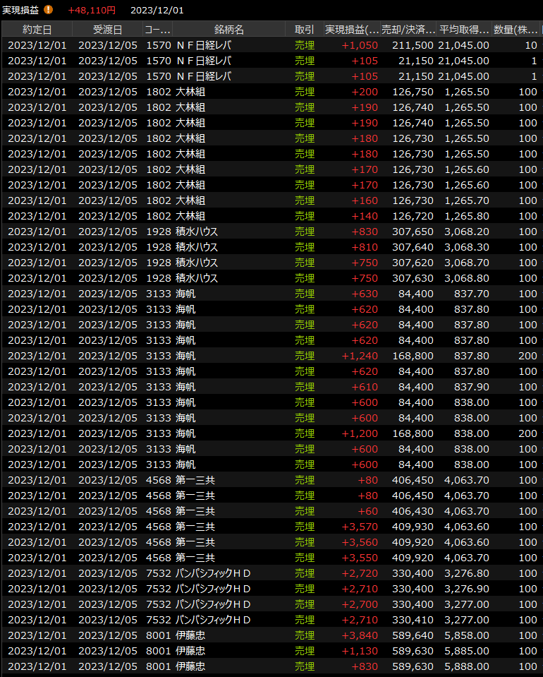 11/30(木)押さない上げない<デイトレ結果> 2023.11.30