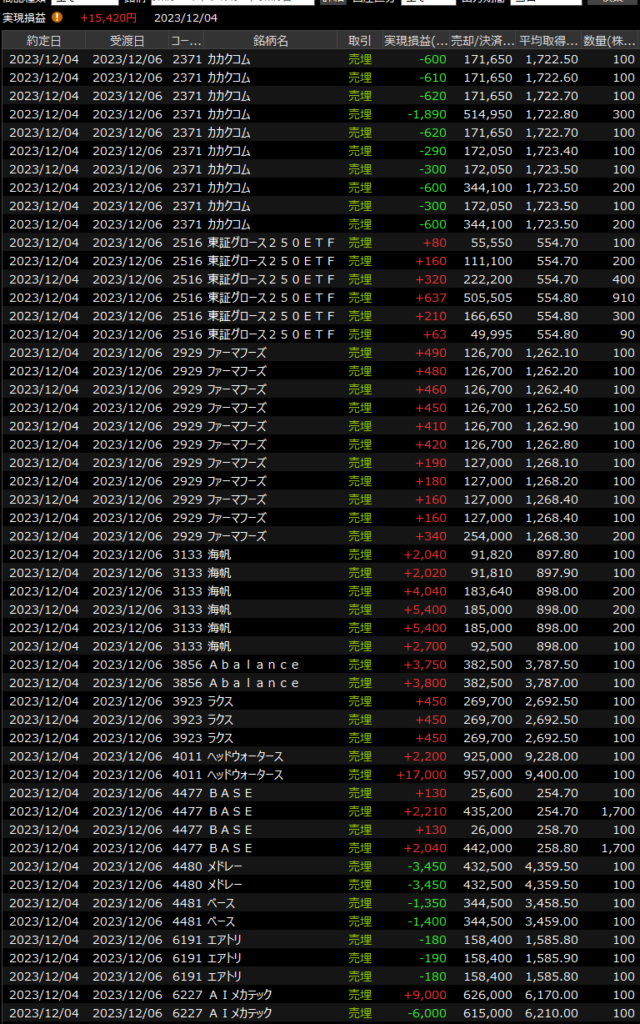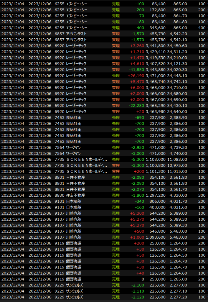 12/5(火)半導体売られる<デイトレ結果> 2023.12.05