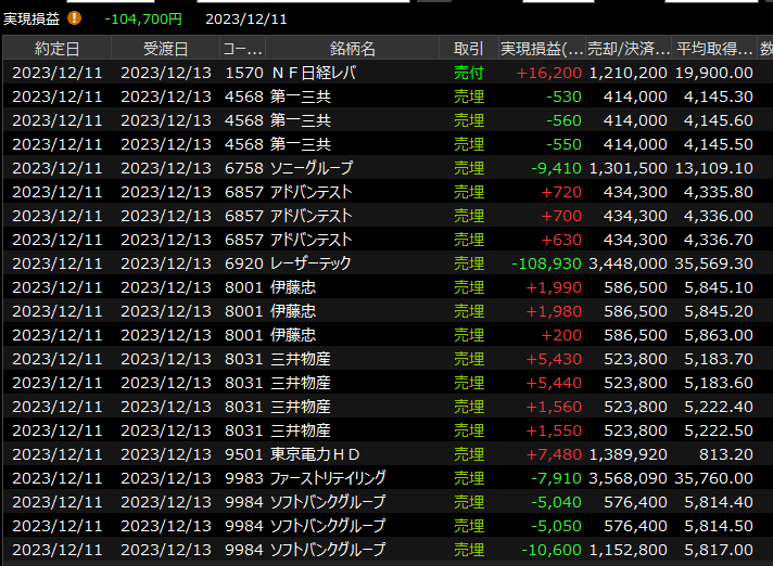 12/12(火)4連爆敗<デイトレ結果> 2023.12.12