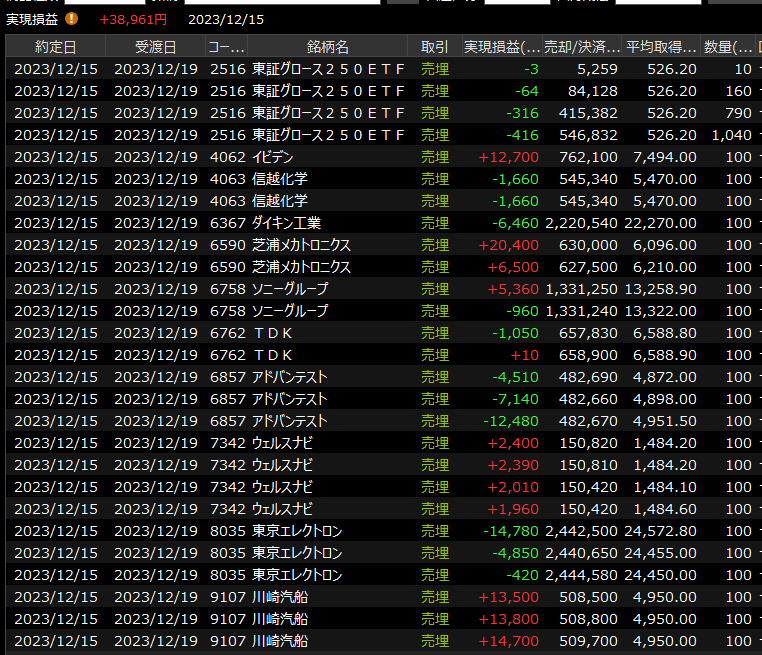 12/18(月)厳しい<デイトレ結果> 2023.12.18