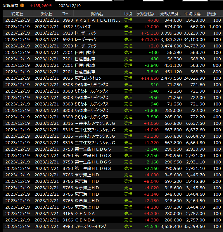 12/18(月)厳しい<デイトレ結果> 2023.12.18