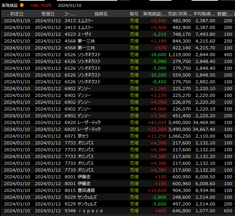 1/9(火)またこのパターン<デイトレ結果> 2024.01.09