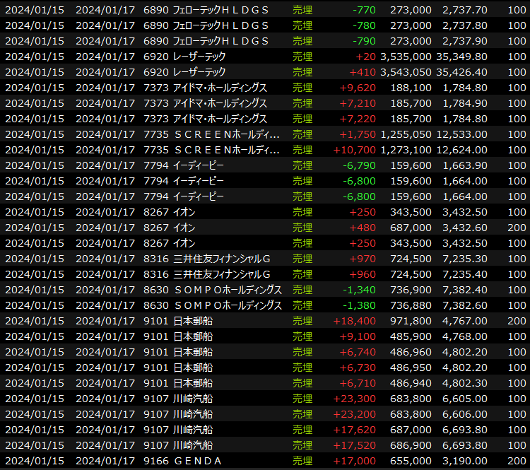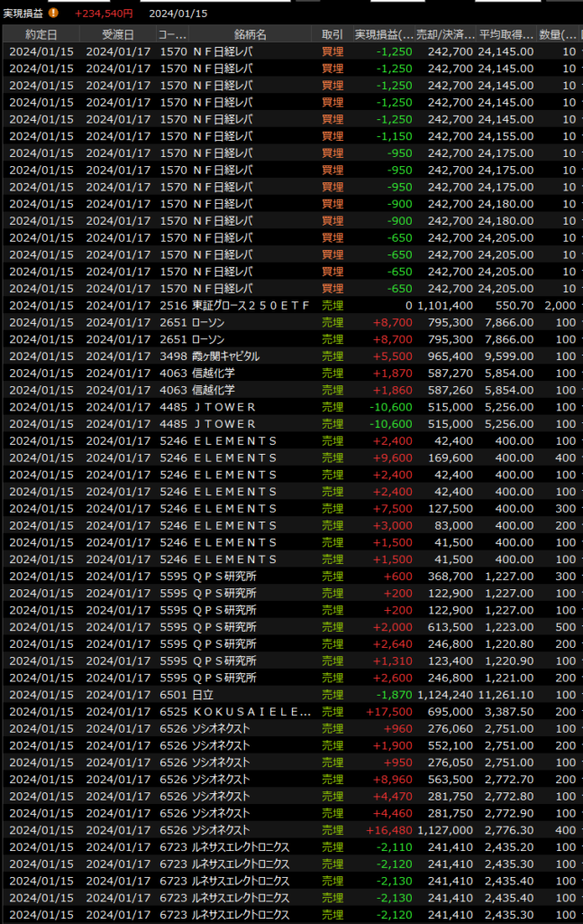 1/12(金)SQ大波乱<デイトレ結果> 2024.01.12