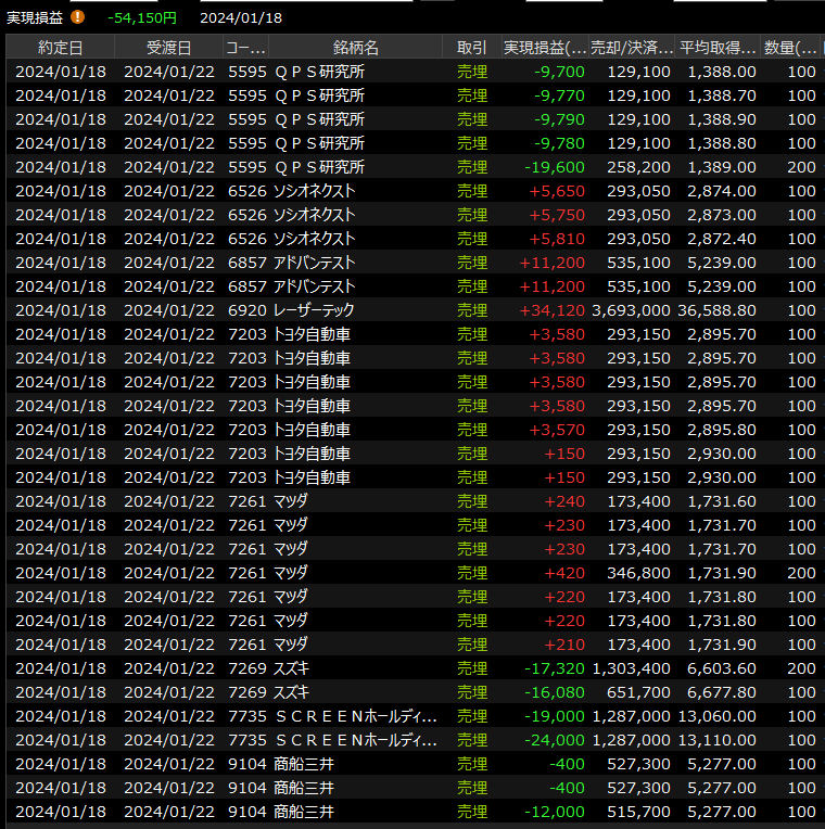 1/19(金)半導体爆騰<デイトレ結果> 2024.01.19