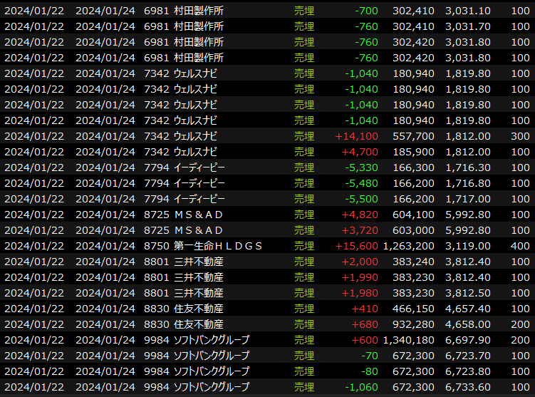 1/23(火)出尽くし<デイトレ結果> 2024.01.23