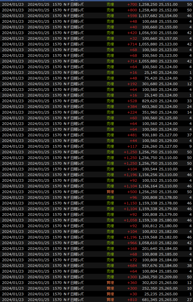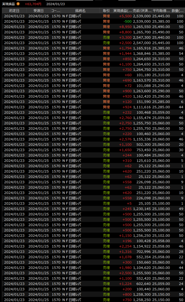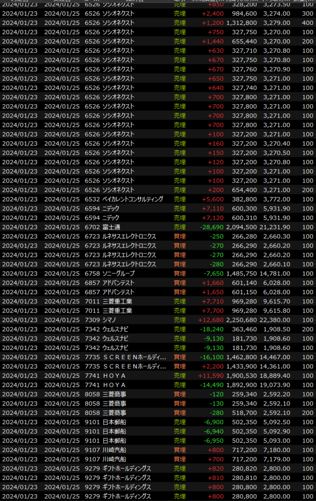 1/24(水)軟調<デイトレ結果> 2024.01.24