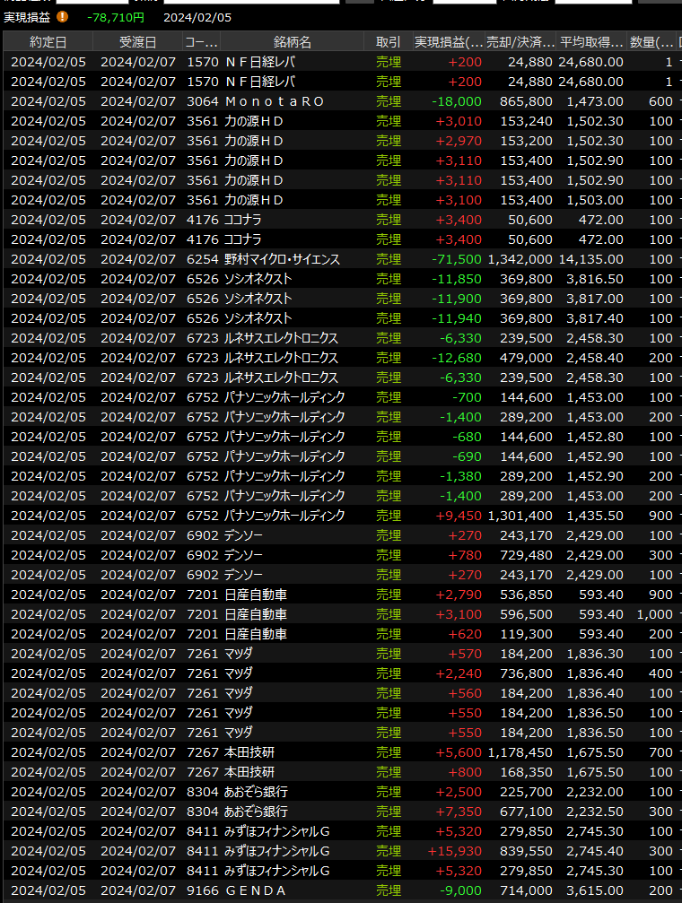2/2(金)後場がショボすぎる<デイトレ結果> 2024.02.02