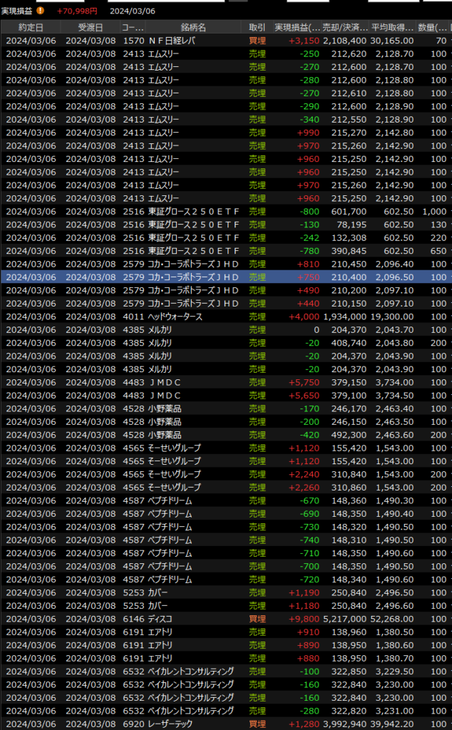 3/7(木)まさかのSQ下方仕掛けで惨敗 2024.03.07