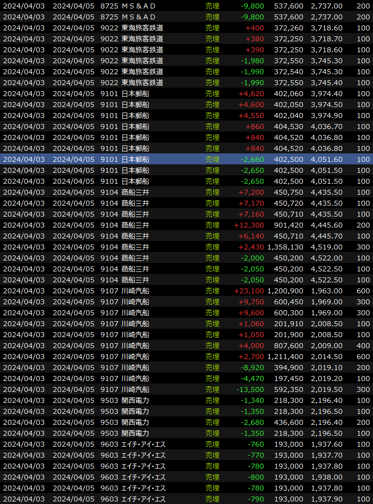 デイトレは3日連続して10時までの勝ちトレードをマイ転またはほぼフイにしています。海運を軸に10時までに3周ほどしましたが(+14万)、10時前に仕込んだ4周目でひっかかってそこからは厳しくなりました(▲12万)。住石をド高値で掴んだのは反省。