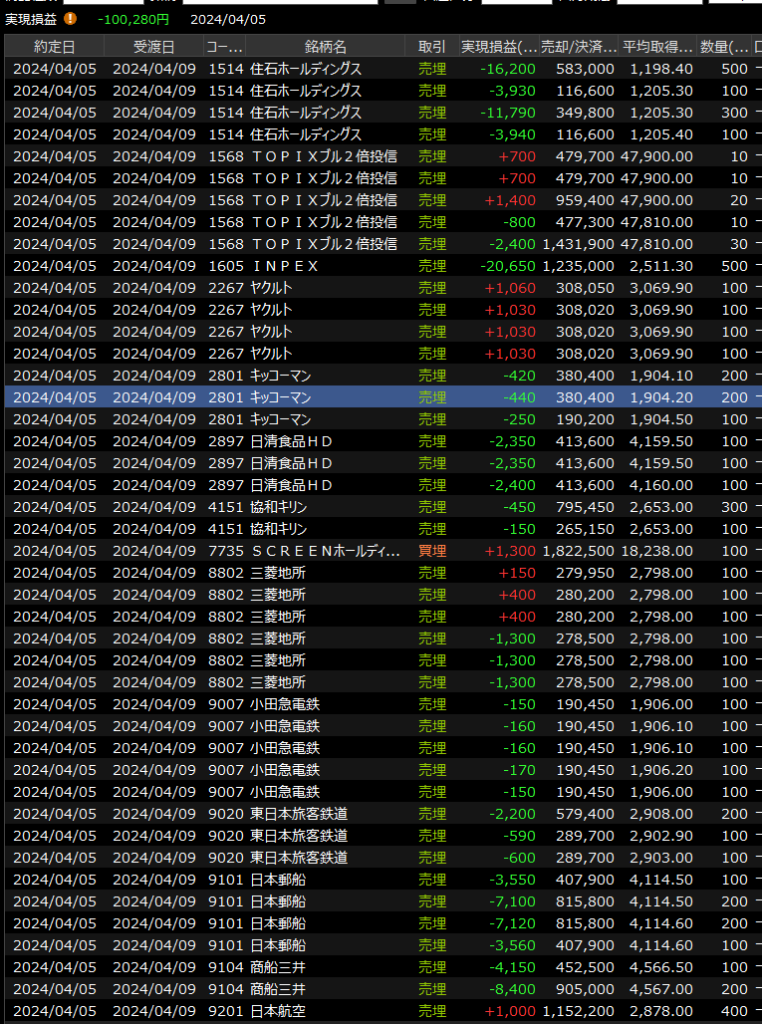 デイトレは「入らない」という道もあったのに、食品や海運などリスク低そうと勝手に解釈した銘柄にのこのこ入って結局憤死。情けないったらないですが、この1週間をこの程度の損失で乗り越えたならまだいける、とむりやり前向きに考えるしかありません。