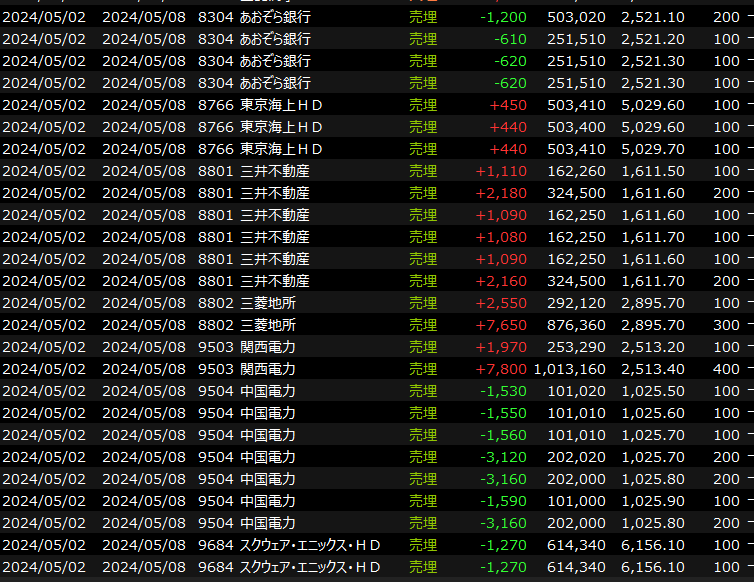 デイトレはレーザテックを少しと半導体でも日本マイクロ、TOWAといった脇の銘柄をやって、あとは不動産、第一三共、東京海上など堅いところをあれやこれや。12:30の後場寄りスタートダッシュに先物が失敗したところでポジションを完済しました。その後商事の決算をショートで少し買ったり、住商をショートで大きく負けたり。