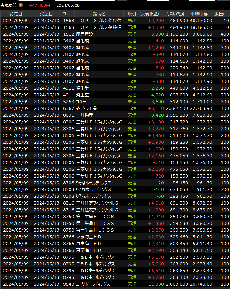 5/8(水)全否定かよ…。 2024.05.08