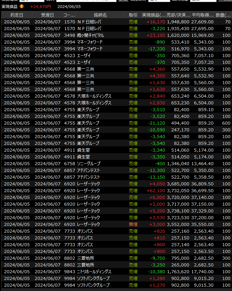 デイトレは朝からきな臭さを感じて第一三共、エーザイ、ニトリなど逃げ腰気味にいましたが、それでも地味にいろいろな銘柄でやられました。レーザーは急速な戻りのなか少し入りましたが、深入りせず後場さわらなかったのが良かったです。今日は一つ間違えたらかなり深刻なダメージを喰らっていたので、もう13:30で全て撤退、逃げるが勝ちにしときます。